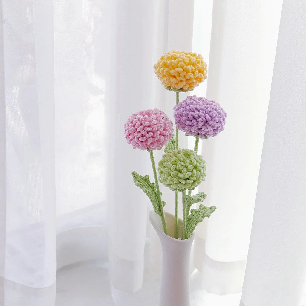 A beautifully handcrafted crochet Ping Pong flower made with products yarn, featuring a perfectly rounded bloom and fine detailing. Elegant and long-lasting, it?s ideal for d?cor, bouquets, or as a thoughtful handmade gift.