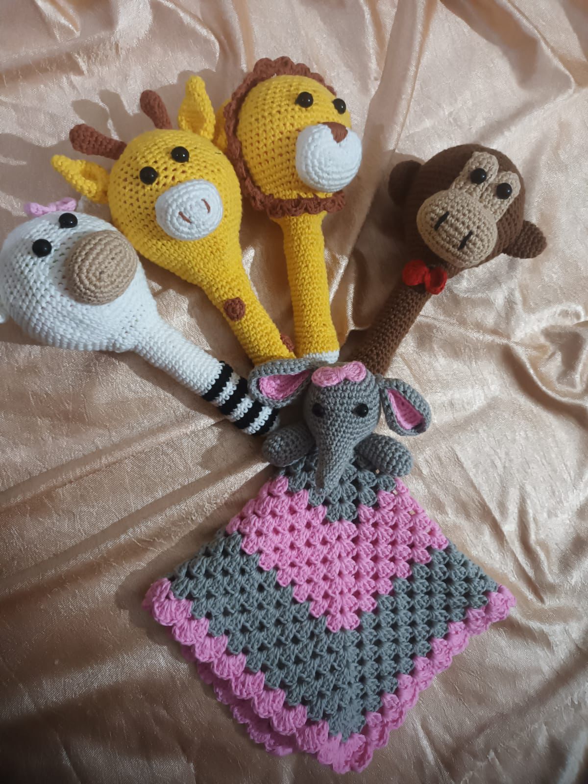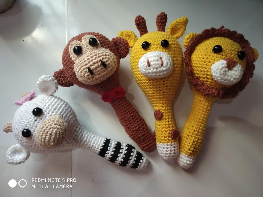 A handcrafted crochet giraffe/lion/monkey baby rattle made with soft products yarn, designed to be lightweight, safe, and easy for little hands to hold. Gentle, adorable, and perfect for playtime or as a thoughtful handmade gift for newborns.