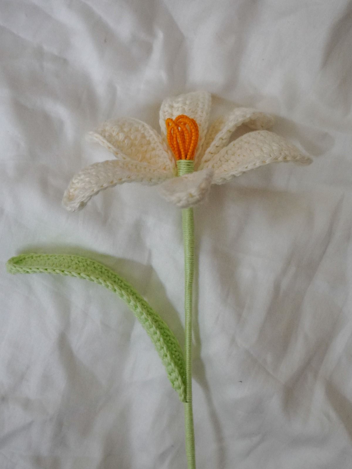 Hand-crocheted with products yarn, this open tulip features soft white petals and a bright yellow center. Each piece is sold as a single flower, perfect to display on its own or styled together in a bunch. A lasting handmade alternative to fresh blooms, ideal for d?cor?or?gifting.