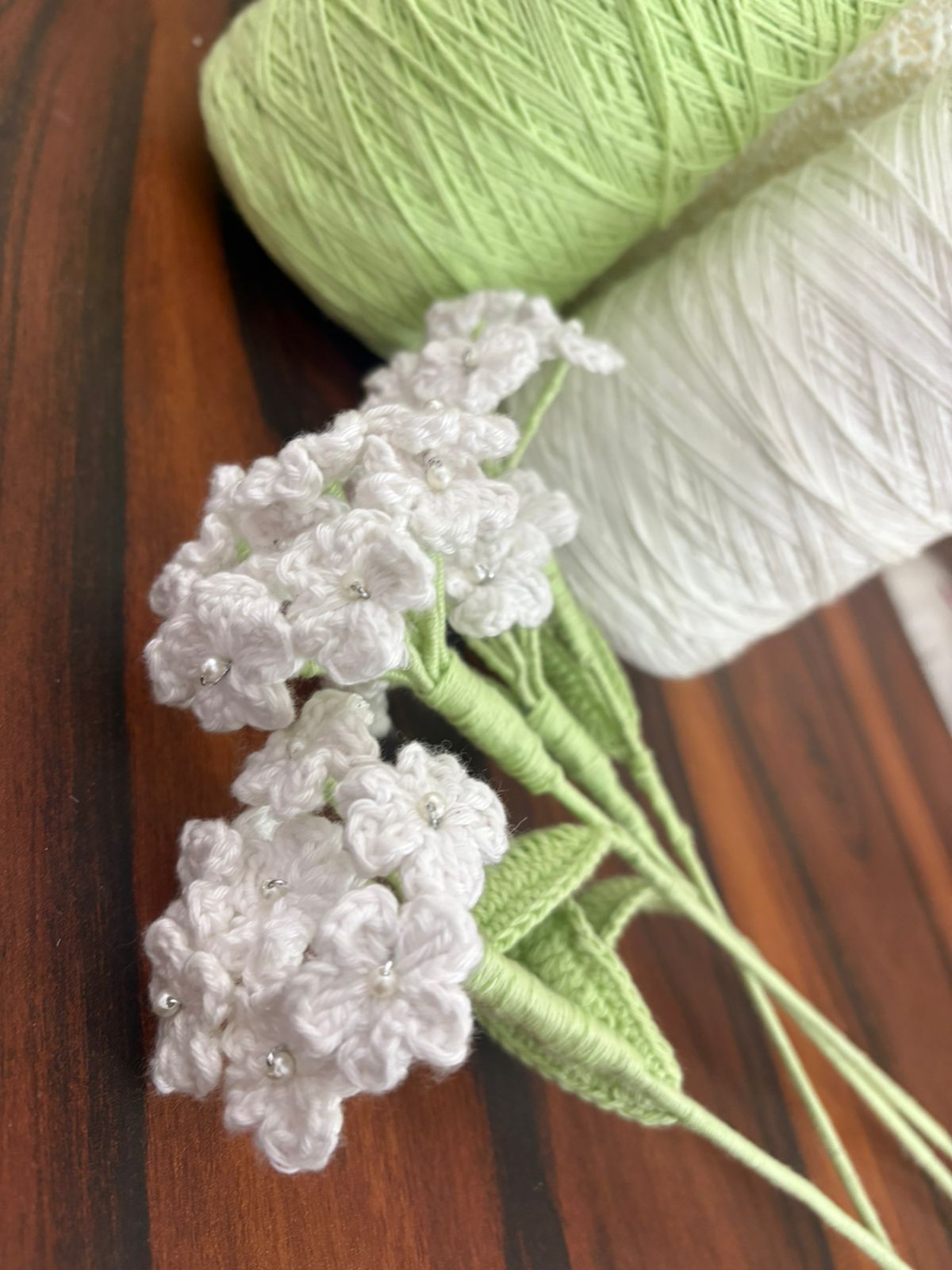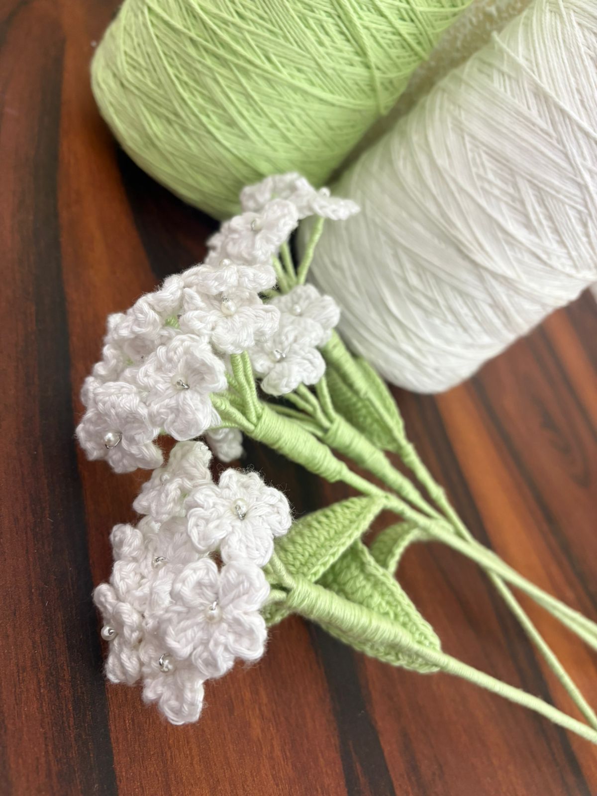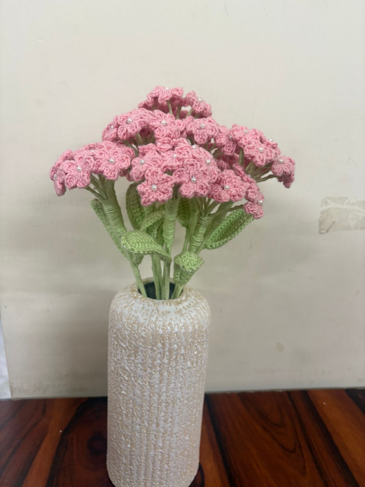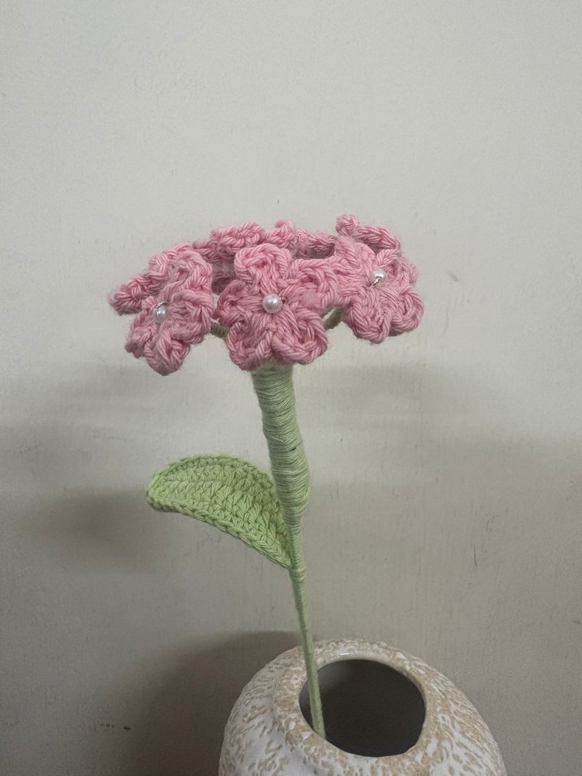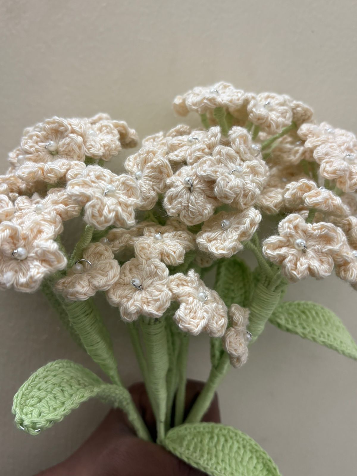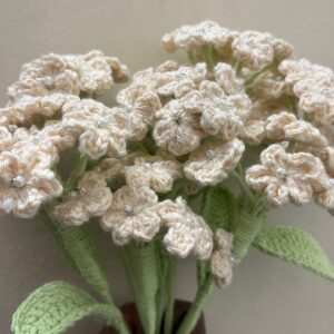 A delicately handcrafted crochet Baby?s Breath made with products yarn, featuring tiny blooms that add a soft, airy charm. Elegant and long-lasting, it?s perfect for bouquets, d?cor, or adding a gentle handmade touch to any arrangement.