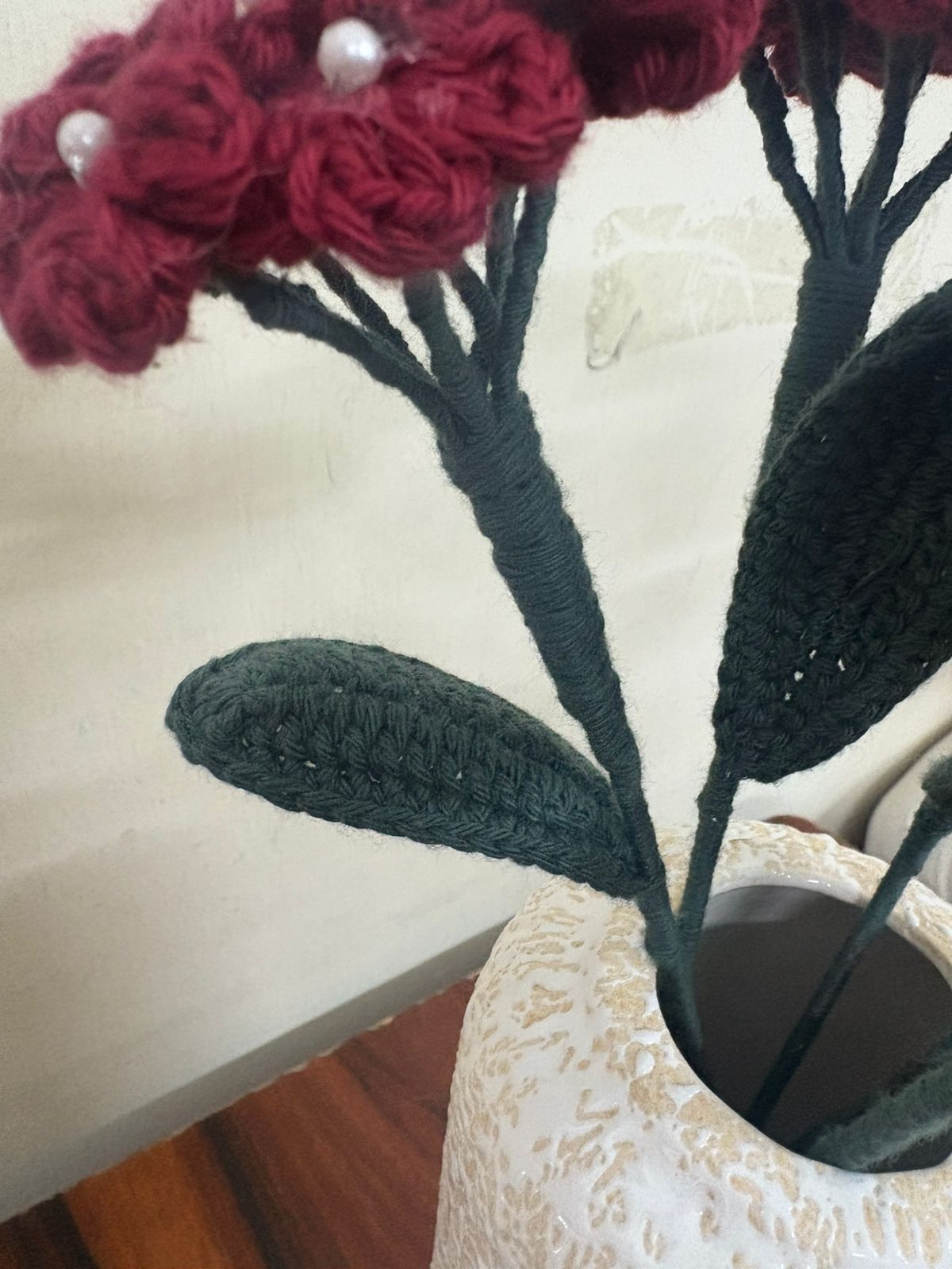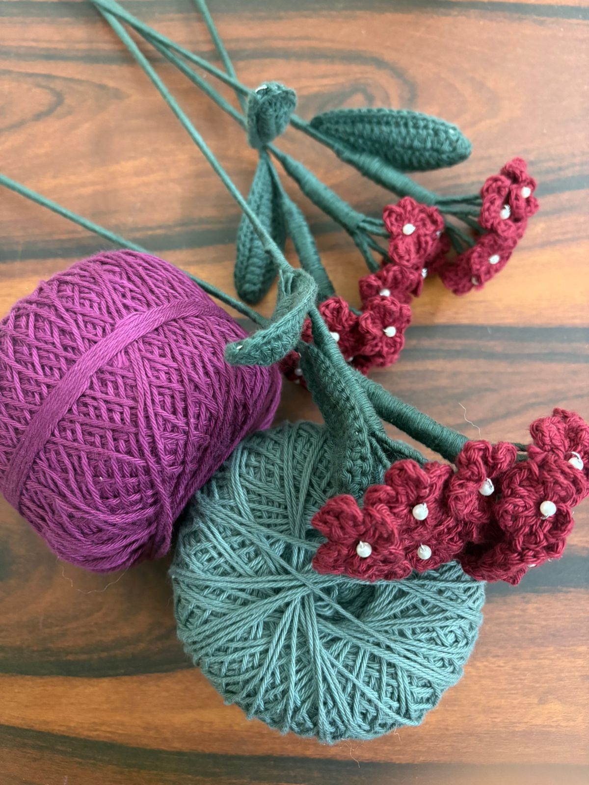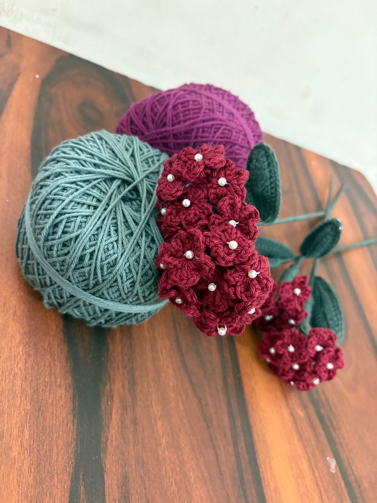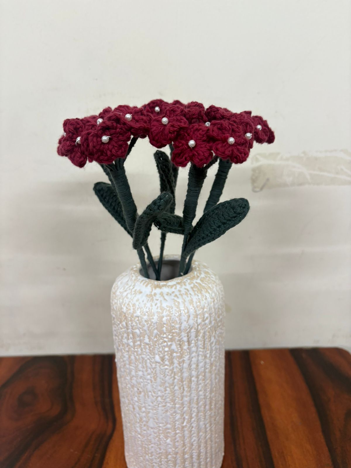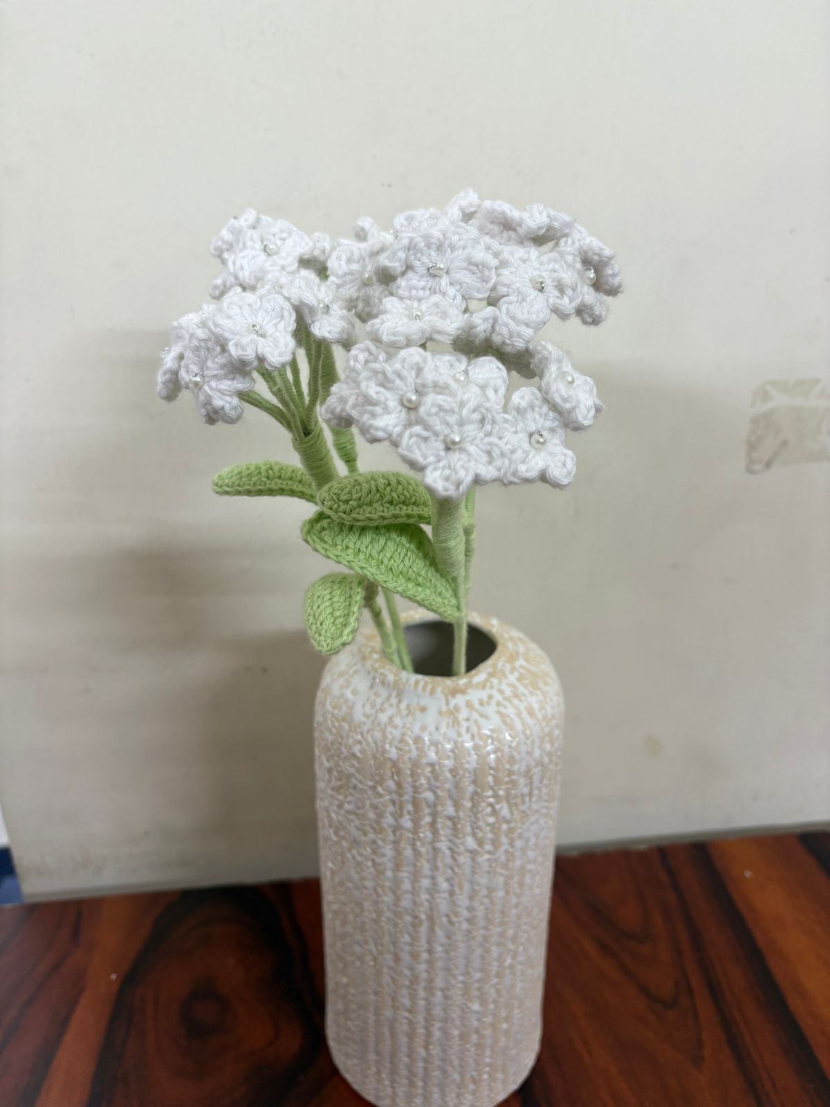 A delicately handcrafted crochet Baby?s Breath made with products yarn, featuring tiny blooms that add a soft, airy charm. Elegant and long-lasting, it?s perfect for bouquets, d?cor, or adding a gentle handmade touch to any arrangement.