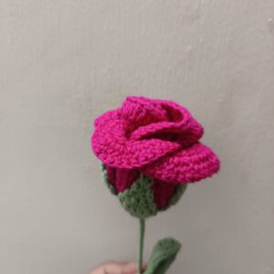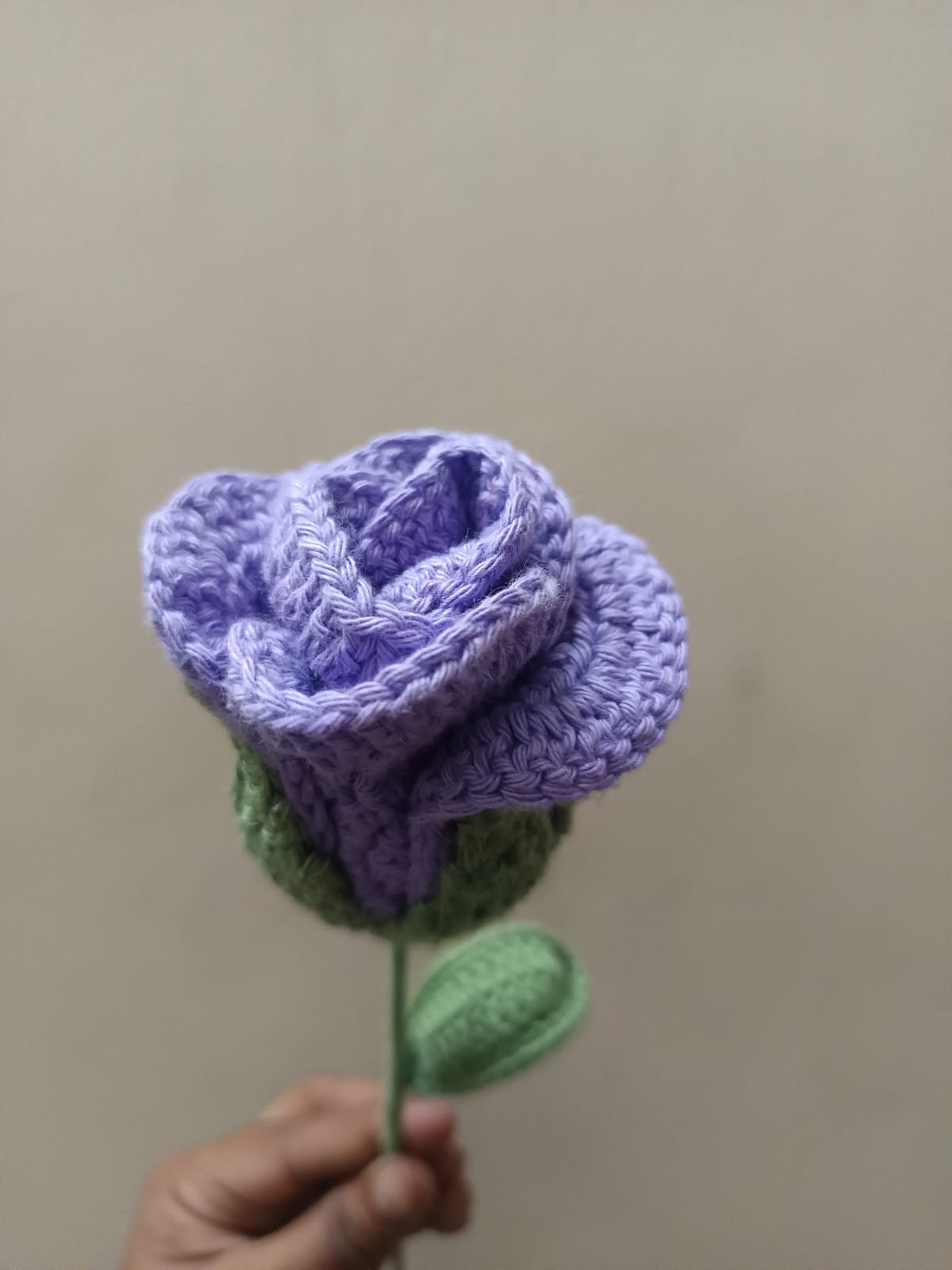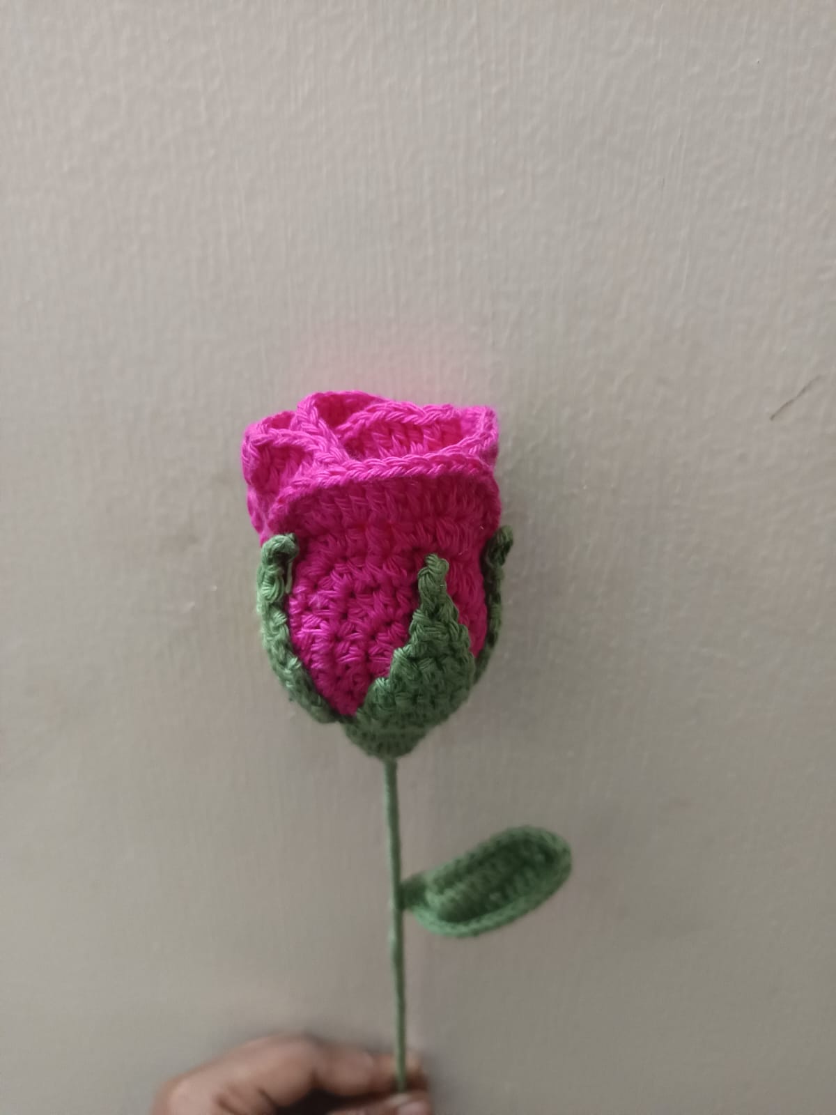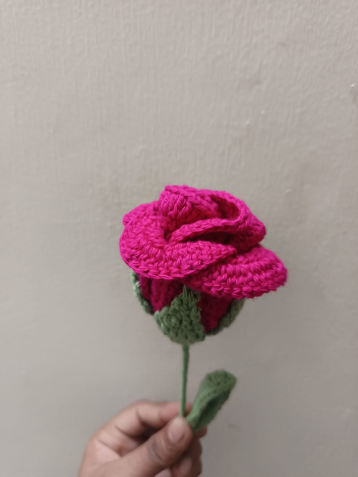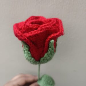 A beautifully handcrafted crochet rose made with products yarn and presented in a glass-style display. Timeless and elegant, this piece is perfect for gifting, keepsakes, or adding a romantic handmade touch to your decor.