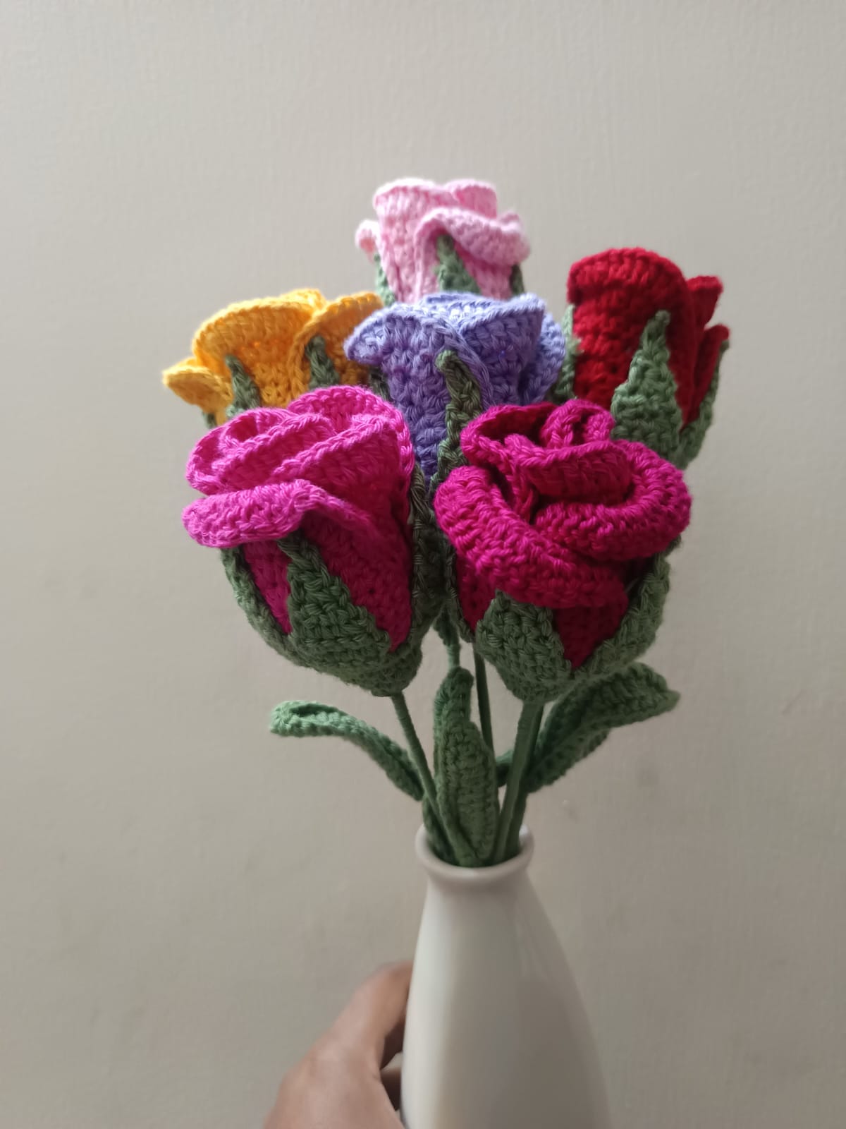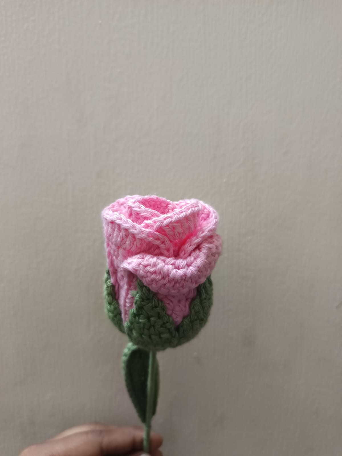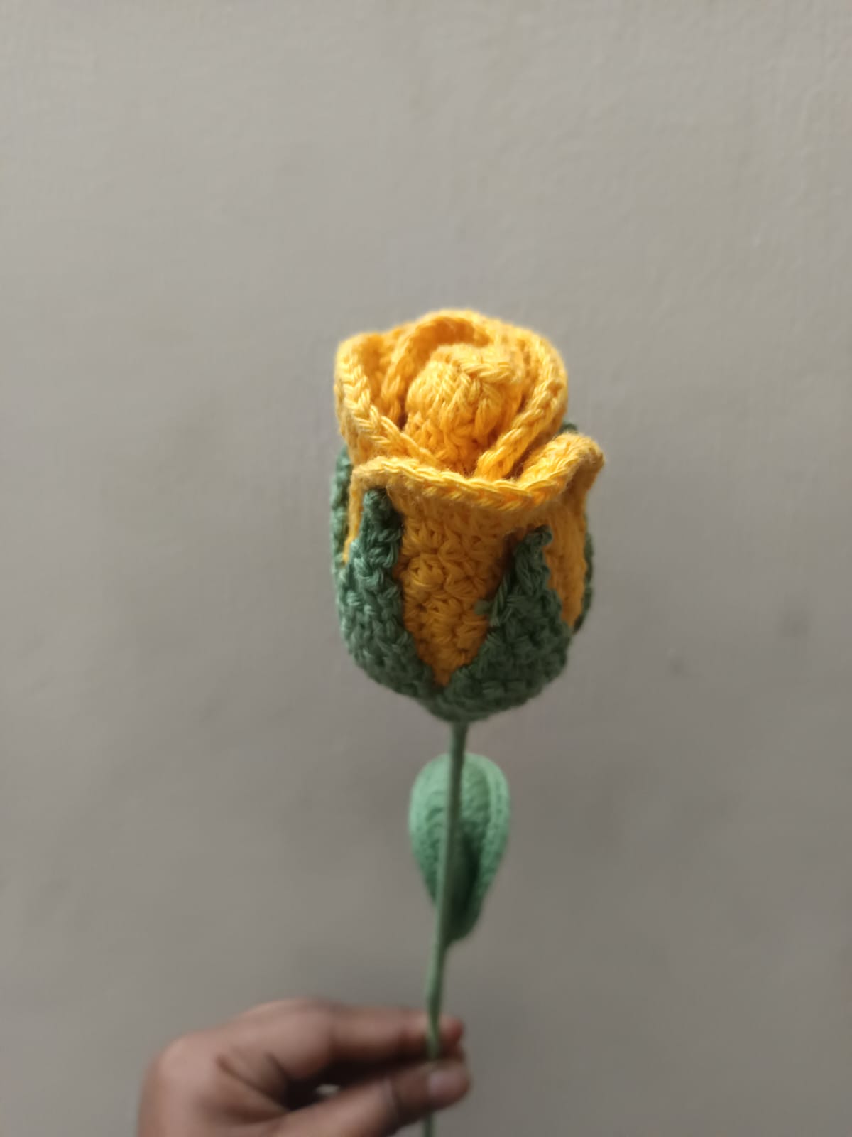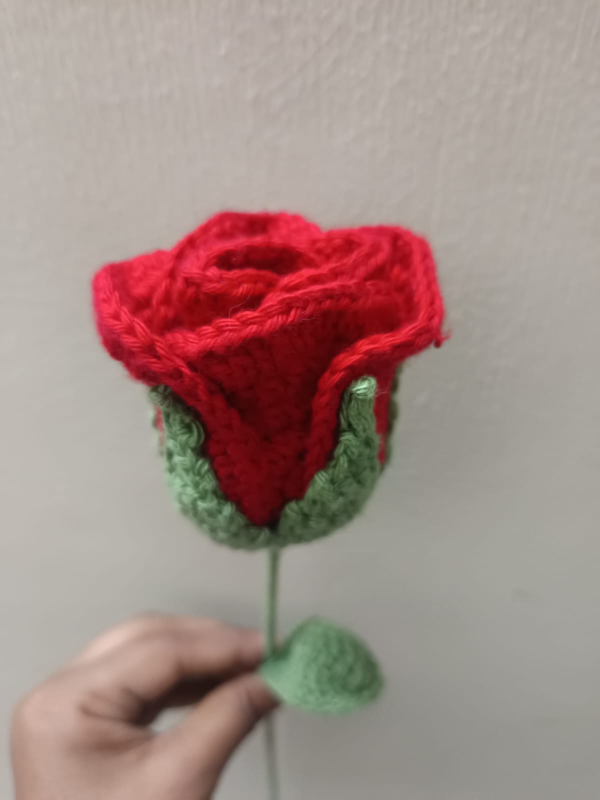 A beautifully handcrafted crochet rose made with products yarn and presented in a glass-style display. Timeless and elegant, this piece is perfect for gifting, keepsakes, or adding a romantic handmade touch to your decor.