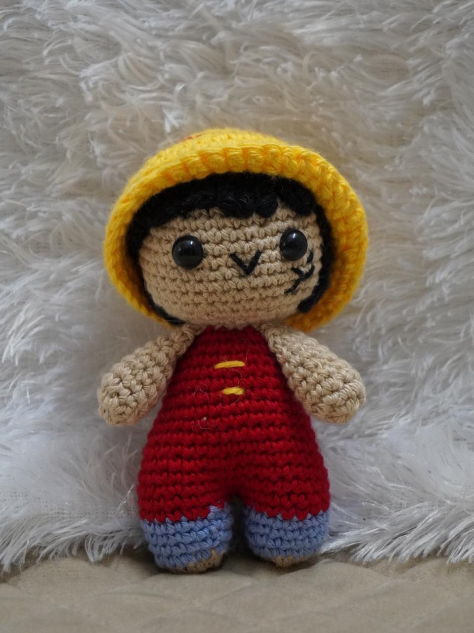 Hand-crocheted with products yarn, this doll is dressed in a red outfit and signature yellow straw hat ? capturing the playful spirit of a pirate adventurer. Safe, lightweight, and made with care, it makes a perfect gift for anime fans, kids, or anyone who loves unique handmade?collectibles.