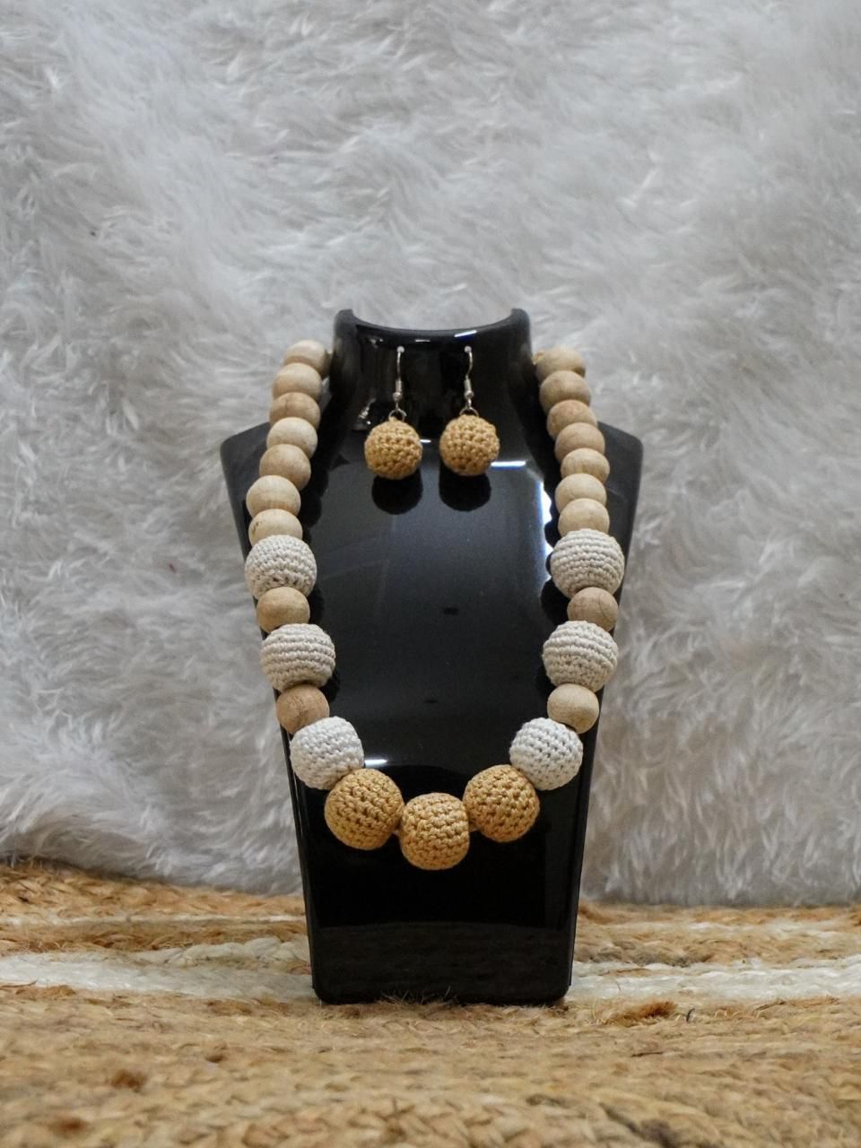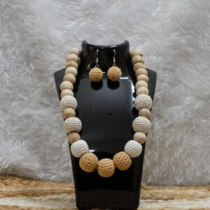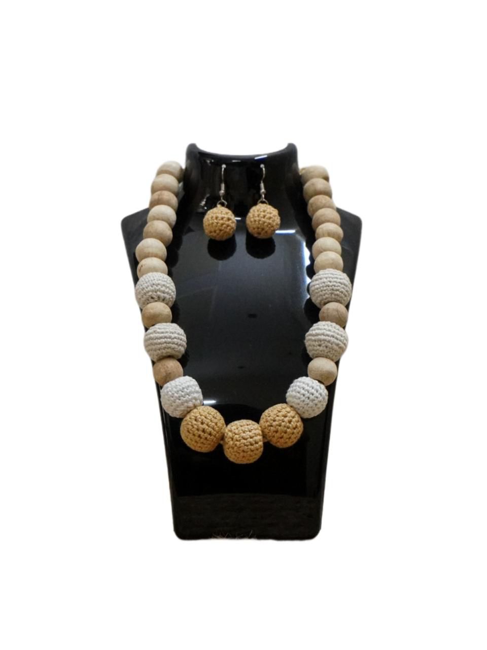 A unique blend of natural wooden beads and hand-crocheted products beads, the Terra Set pairs a statement necklace with matching earrings. Lightweight yet striking, it?s a versatile design that flows effortlessly from everyday wear to special?occasions.